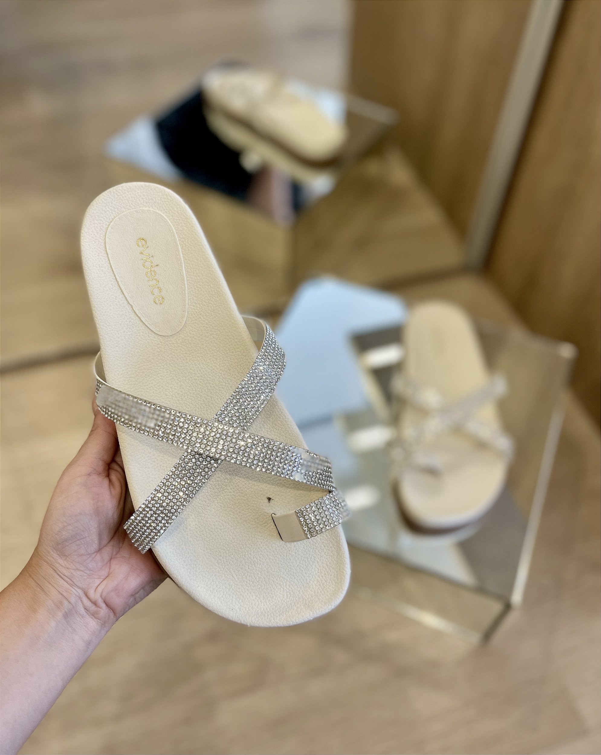 A nossa papete Luci traz um toque charmoso com suas tiras brilhosas. Super confortável, e muito estilosa! Aposte nessa tendência e arrase!