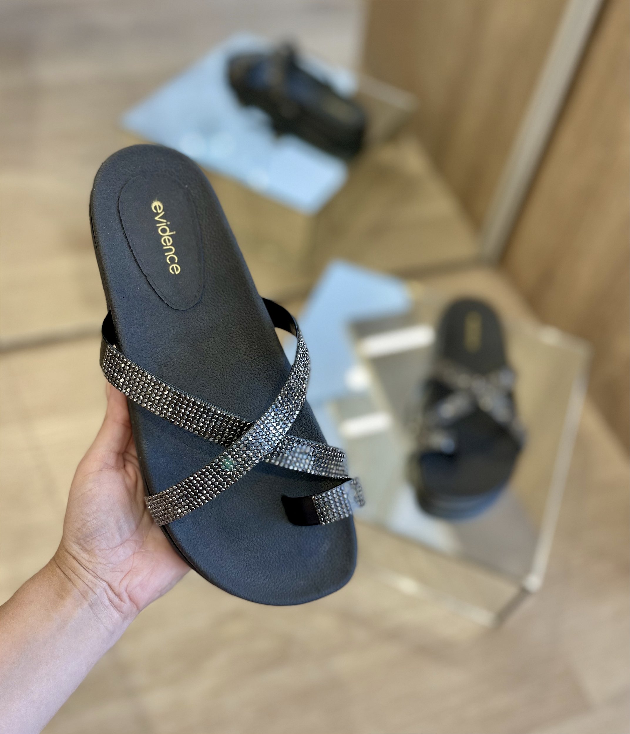 A nossa papete Luci traz um toque charmoso com suas tiras brilhosas. Super confortável, e muito estilosa! Aposte nessa tendência e arrase!