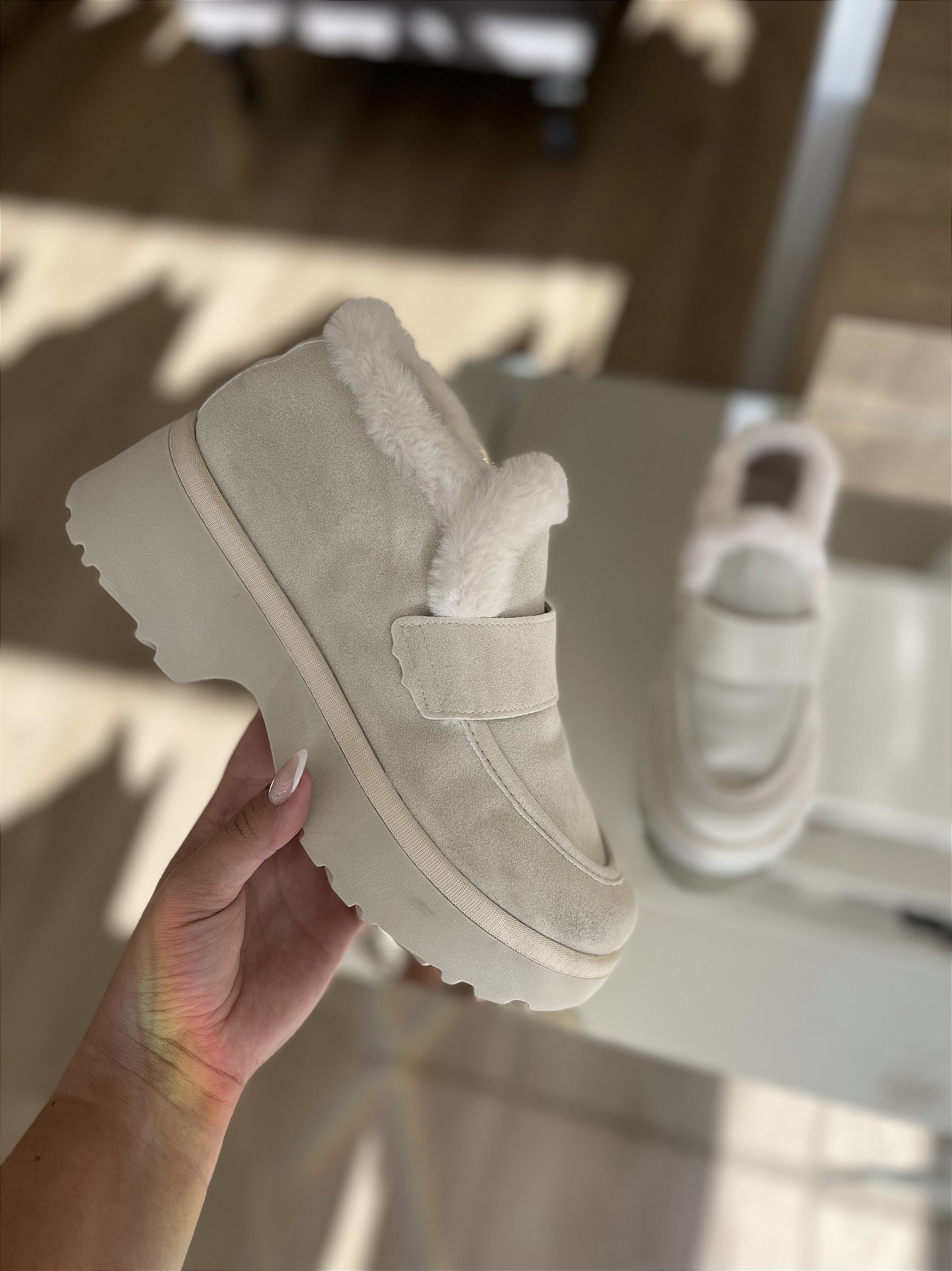 Nossa bota ankle boot Carla é toda em material de camurça, com detalhes de pelos. Solado tratorado com altura de 5cm.