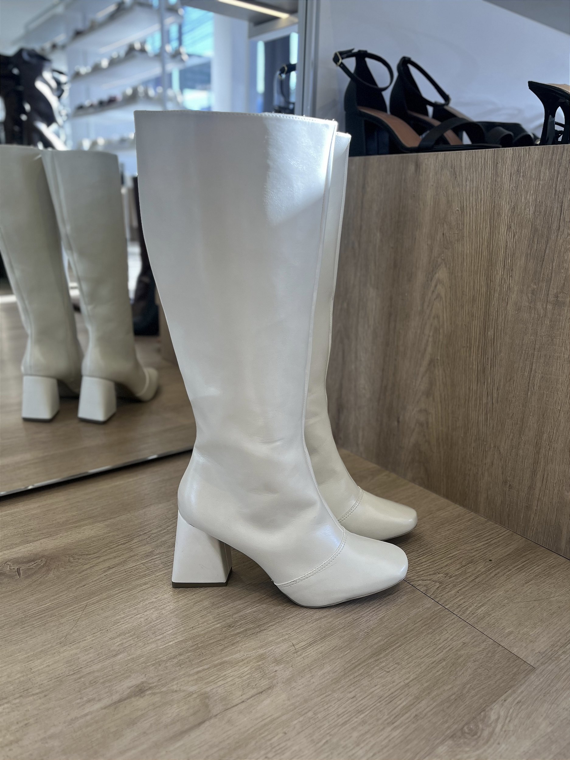 Bota clássica de salto bloco não pode faltar no guarda-roupas das mulheres elegantes. Verdadeiro sinônimo de poder, essa bota salto bloco com bico quadrado e material em napa vai ser sua aliada nessa estação.