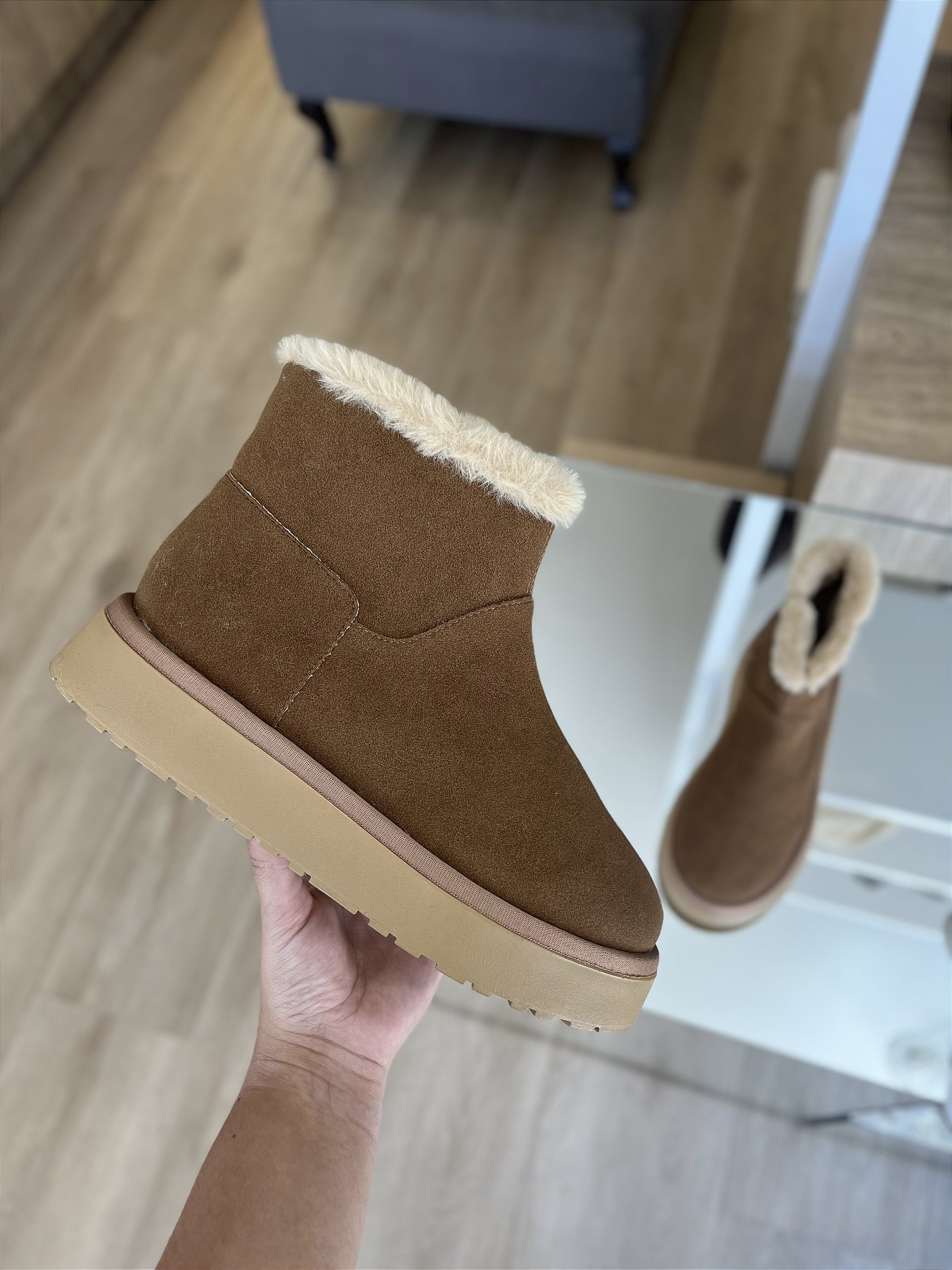 A bota Morgana possui o solado de 4cm, bico arredondado, toda forrada com pelinhos por dentro, e por fora é em material de camurça. Perfeita para os dias mais frios.