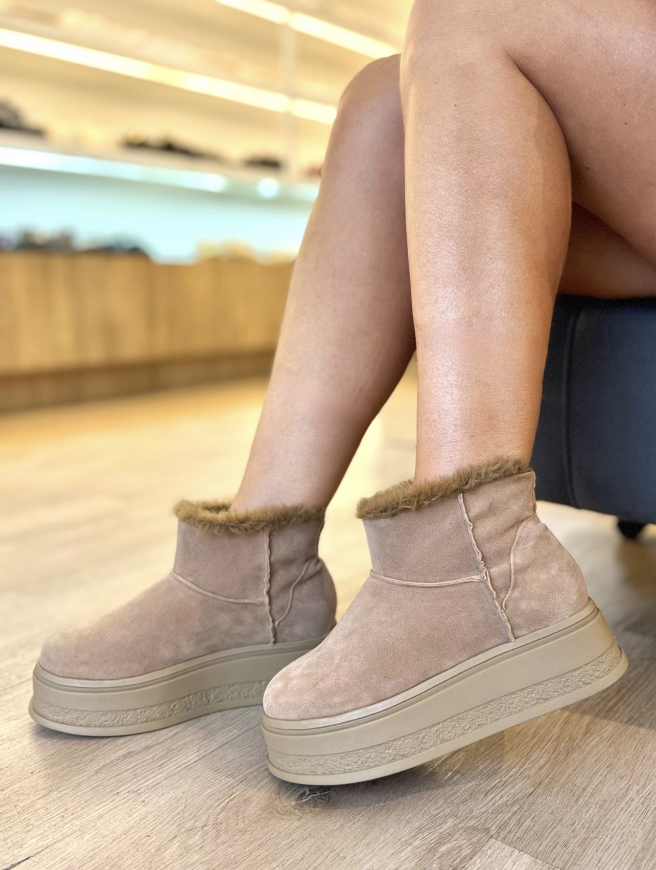 Bota De Pelos Camurça Bege Charlote