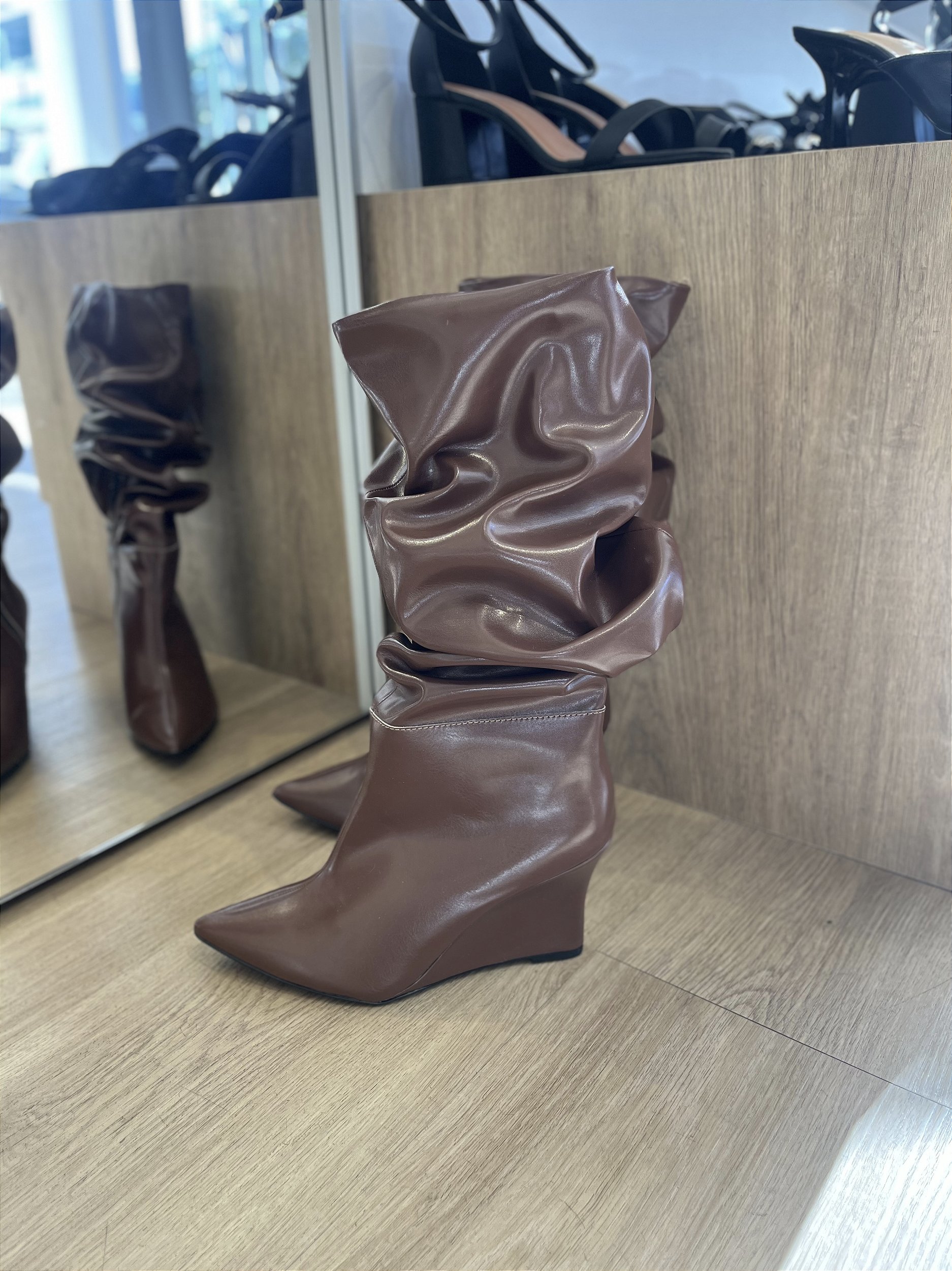 Bota Marrom Cano Slouch Salto Anabela Cano Médio Raiana