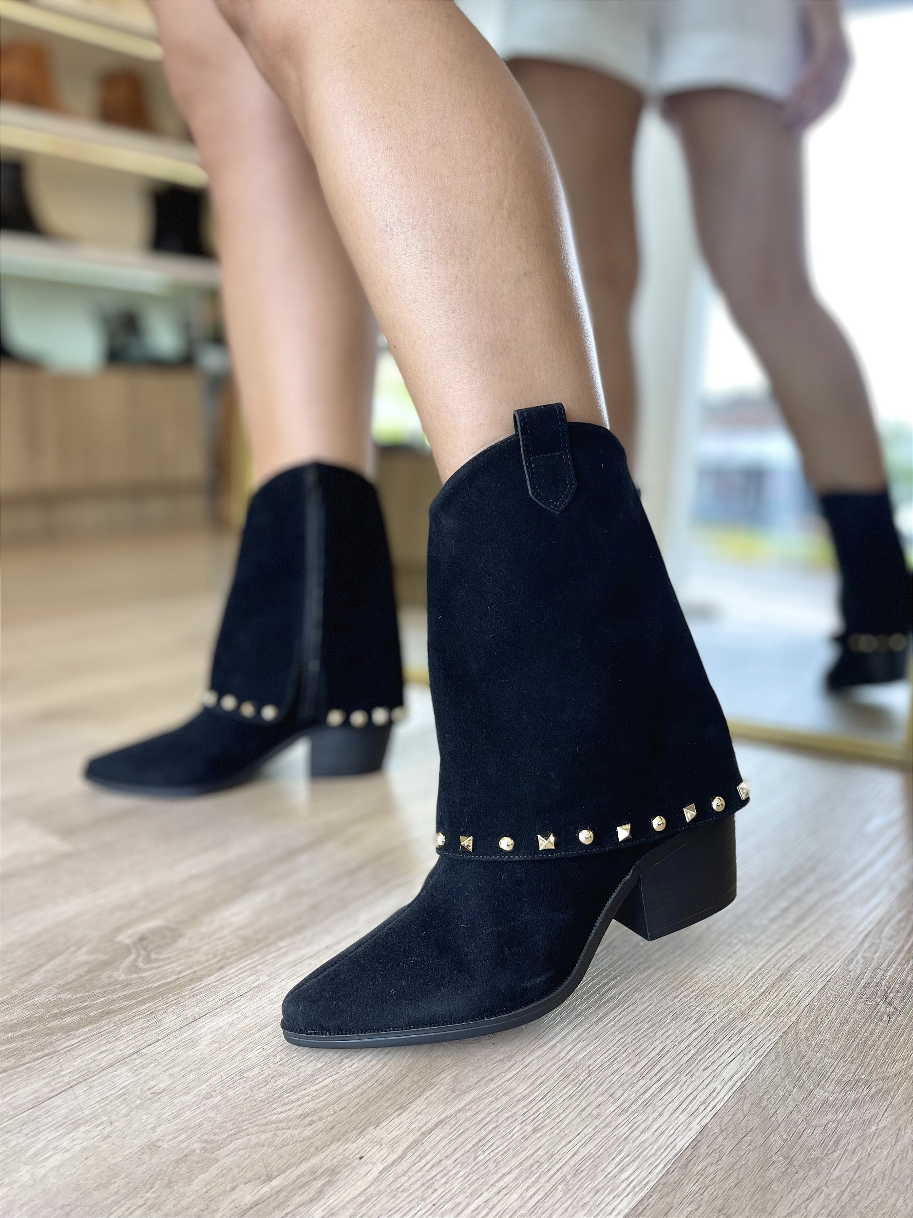 Bota Saia Camurça Preta Rúbia: