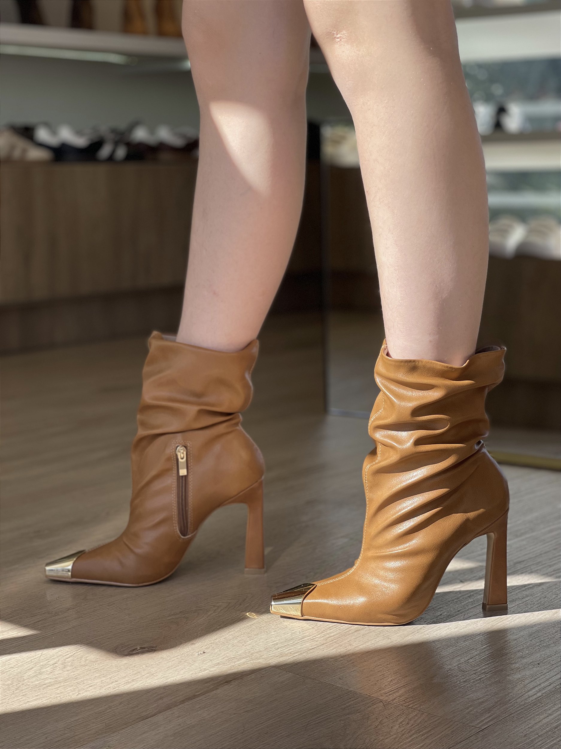 Bota Slouch Caramelo Com Biqueira Dourada Jé