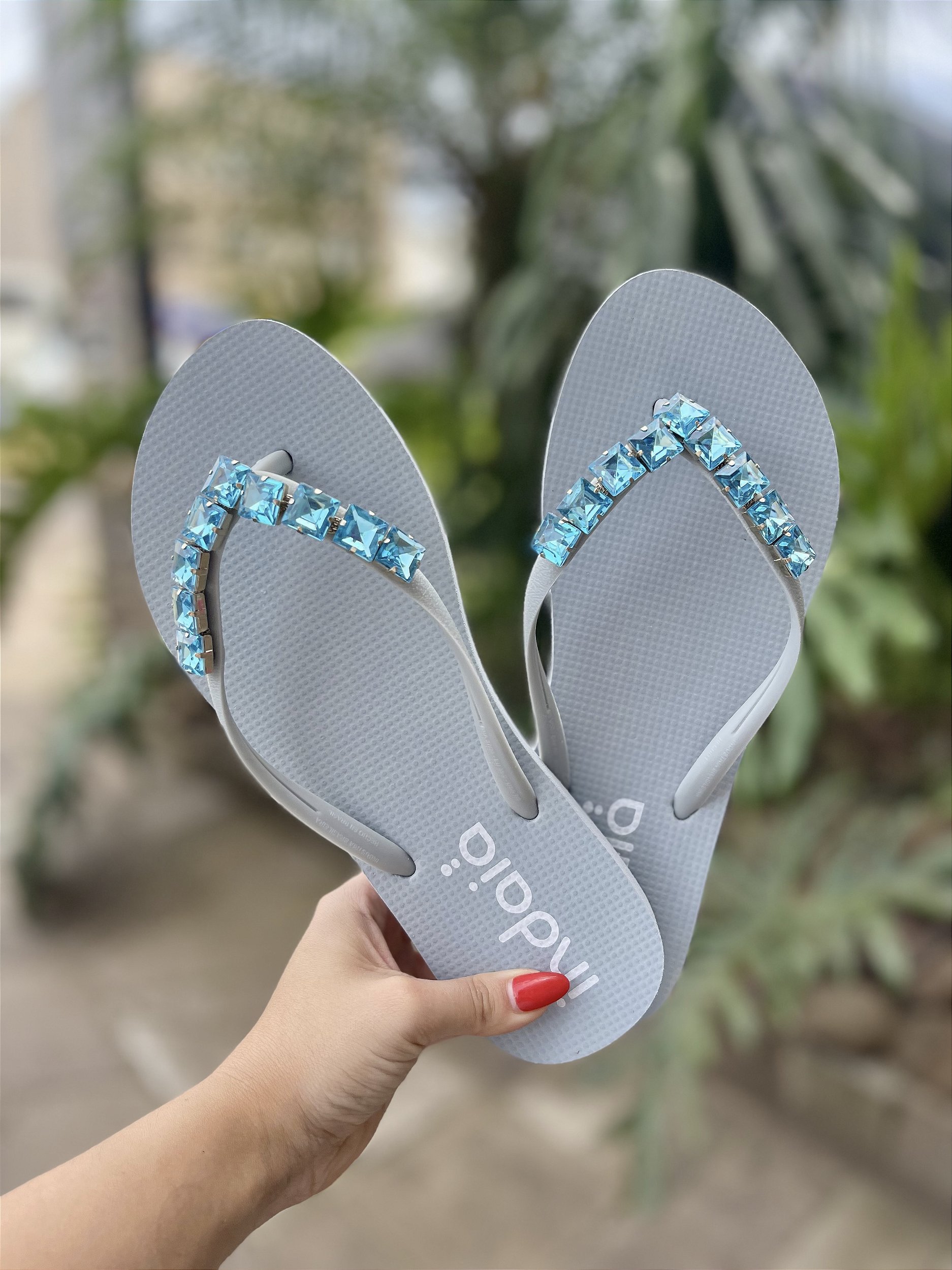 Chinelo Azul Com Detalhe Pedras Indaiá