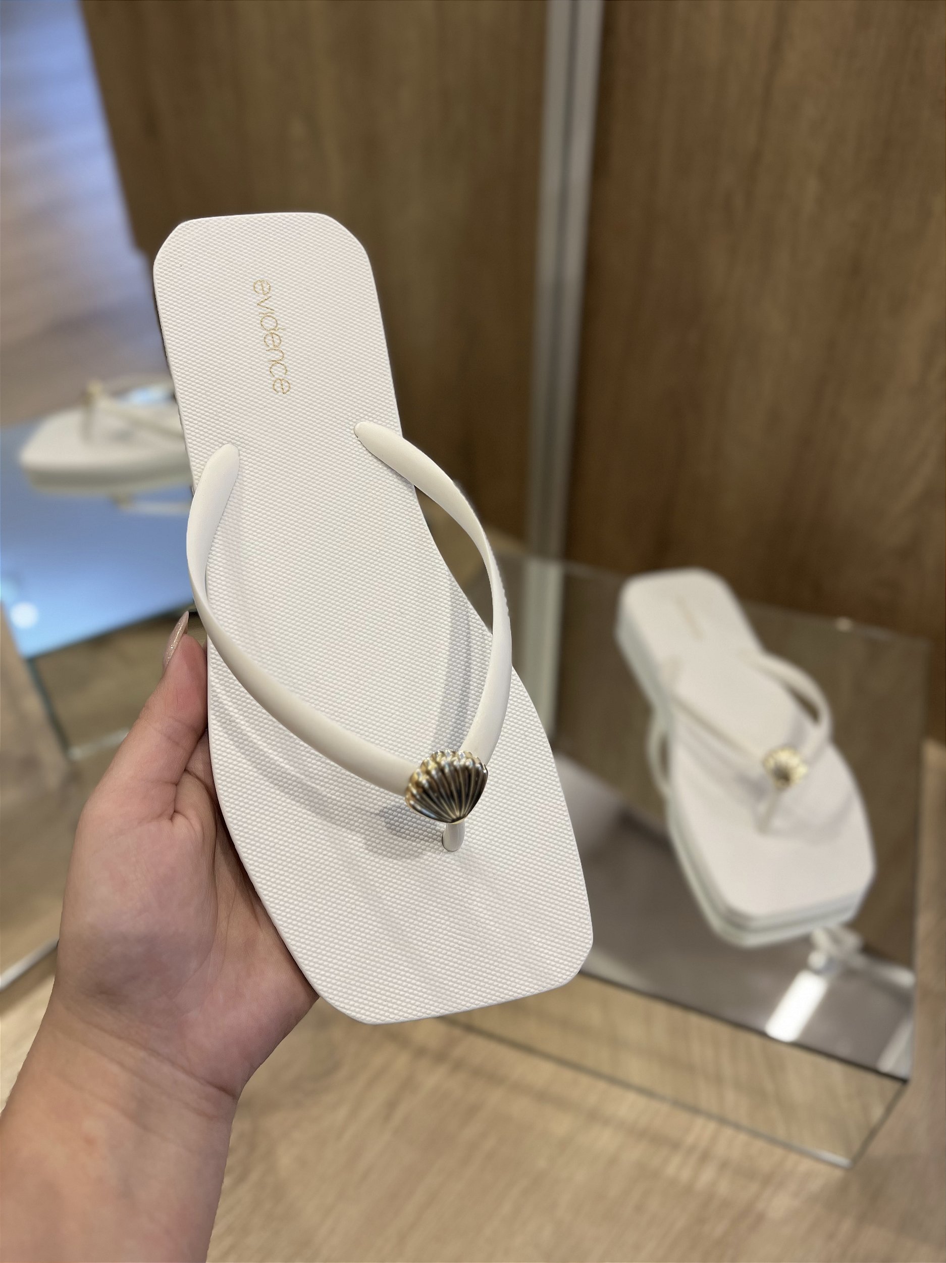 Chinelo Branco Detalhe Concha Dourado Evidence