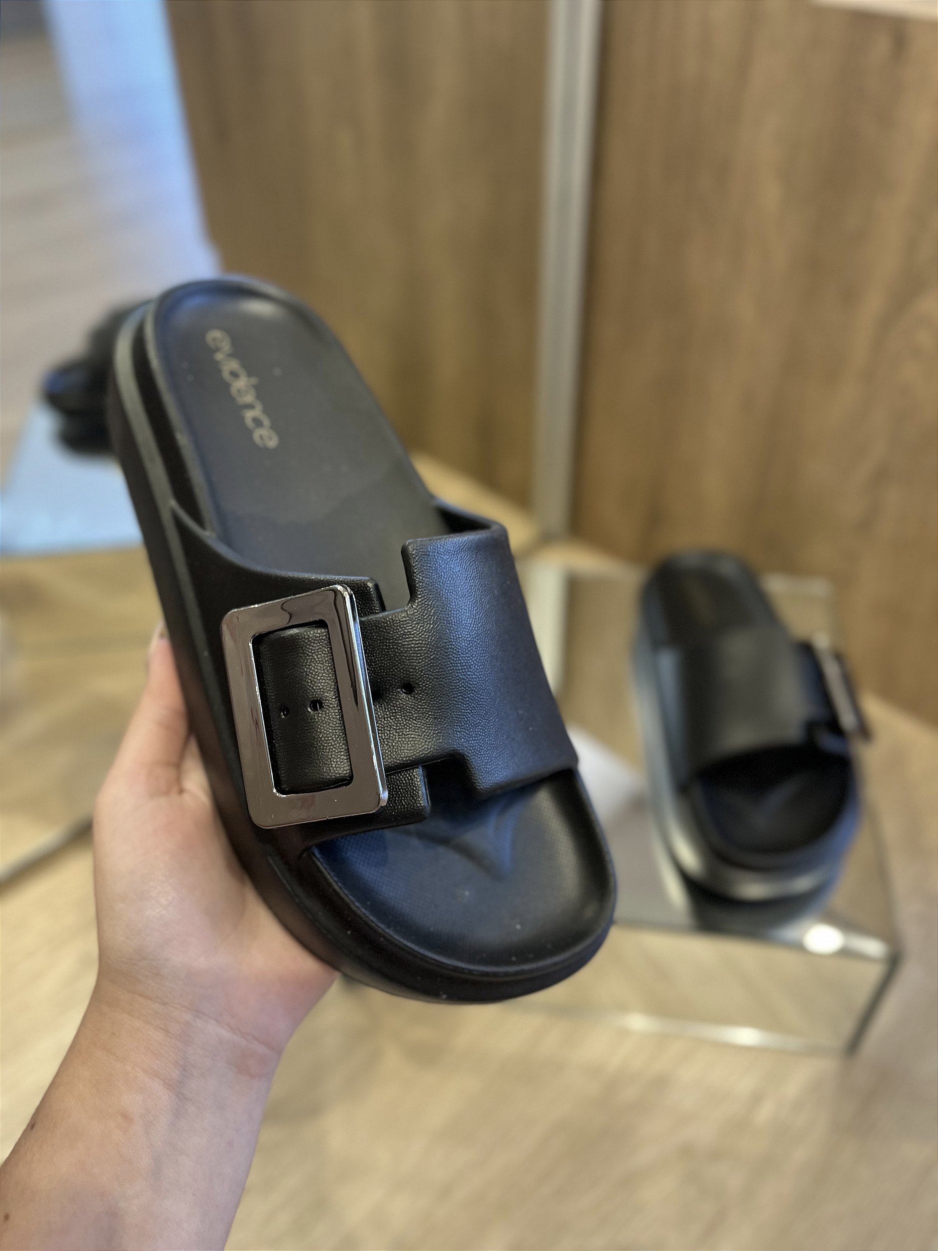 Chinelo Preto Com Fivela Grafite Estela