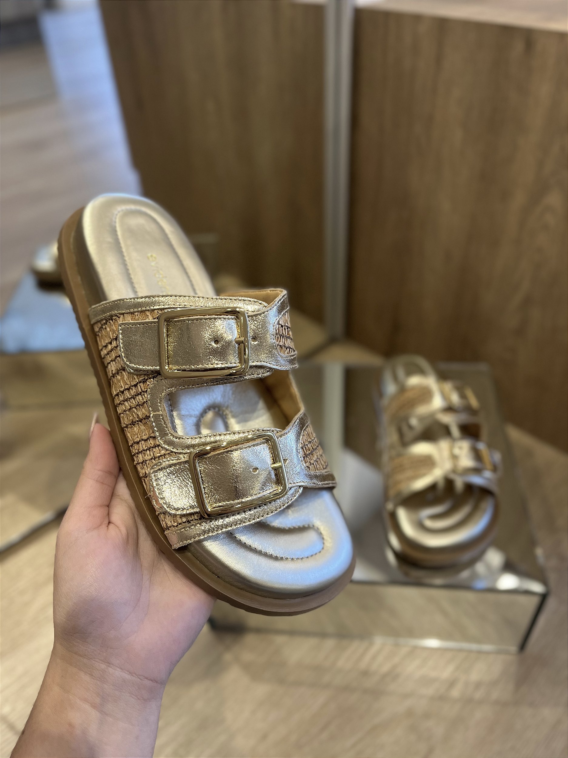 Nossa papete Mel possui duas tiras com um detalhe de fivela dourada e trabalhado de palha. Possui um solado de 3cm todo emborrachado, que traz mais conforto e segurança ao caminhar. Aposte nessa nova tendência que vem com tudo!