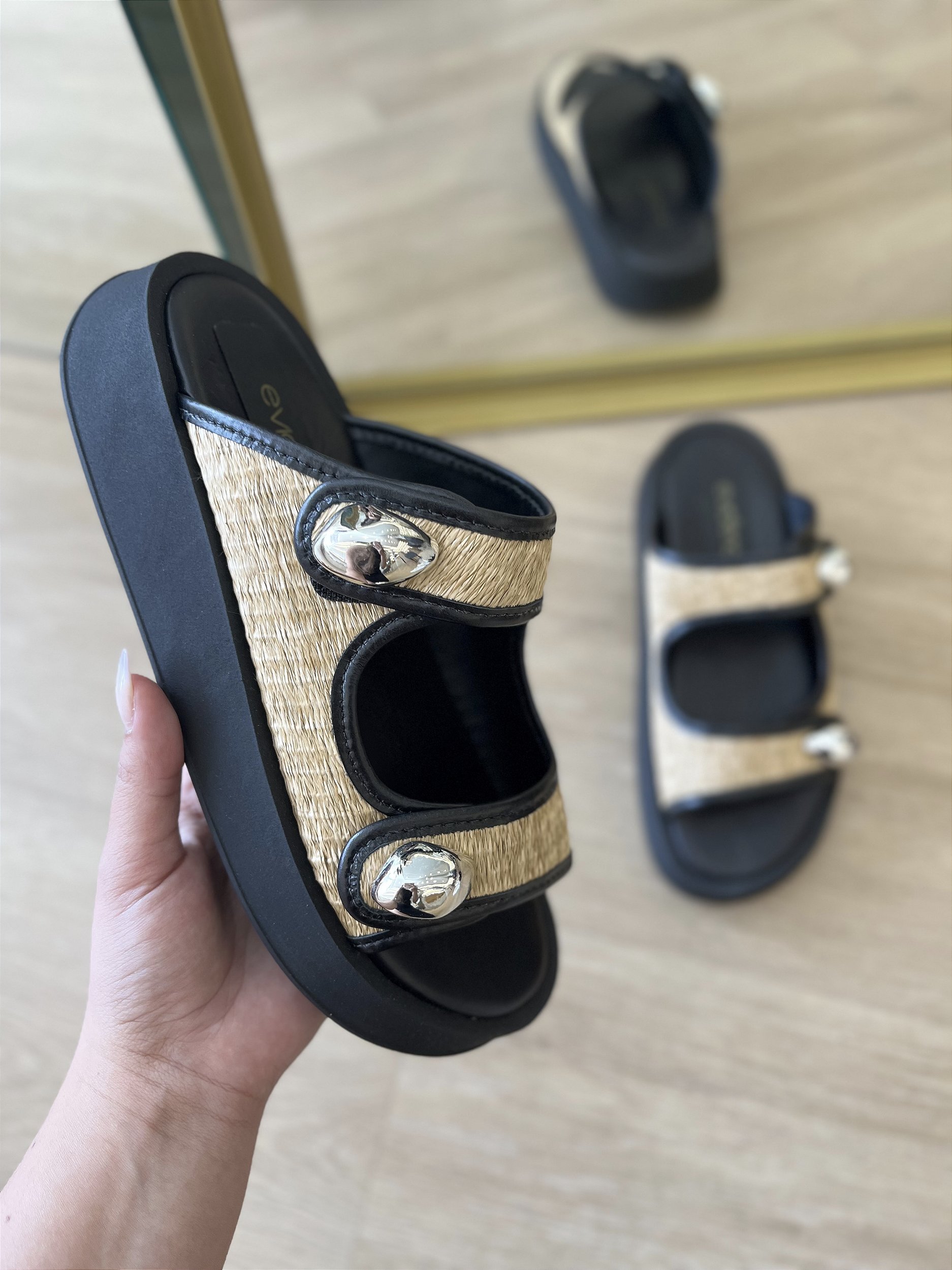 A Papete Daniela possui detalhe de palha e velcro nas duas tiras slides, solado emborrachado e a palmilha é extremamente confortável. Uma tendência que traz conforto e elegância para a mulher moderna!