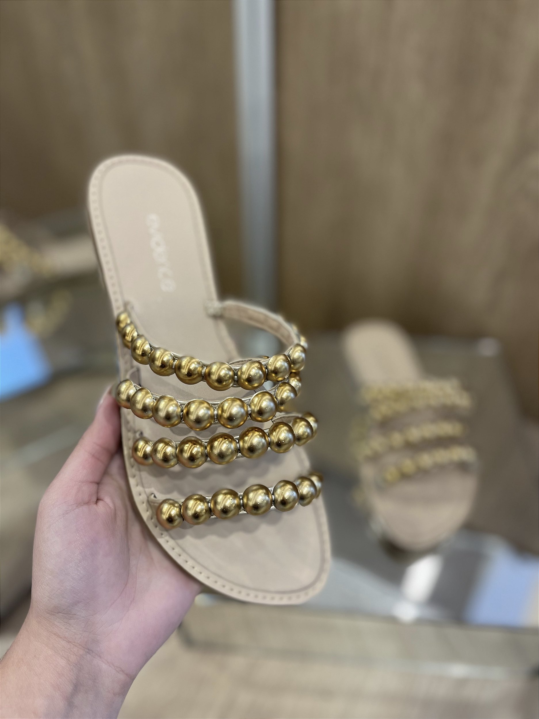 Rasteira Bege Com Aplicações Douradas Carine