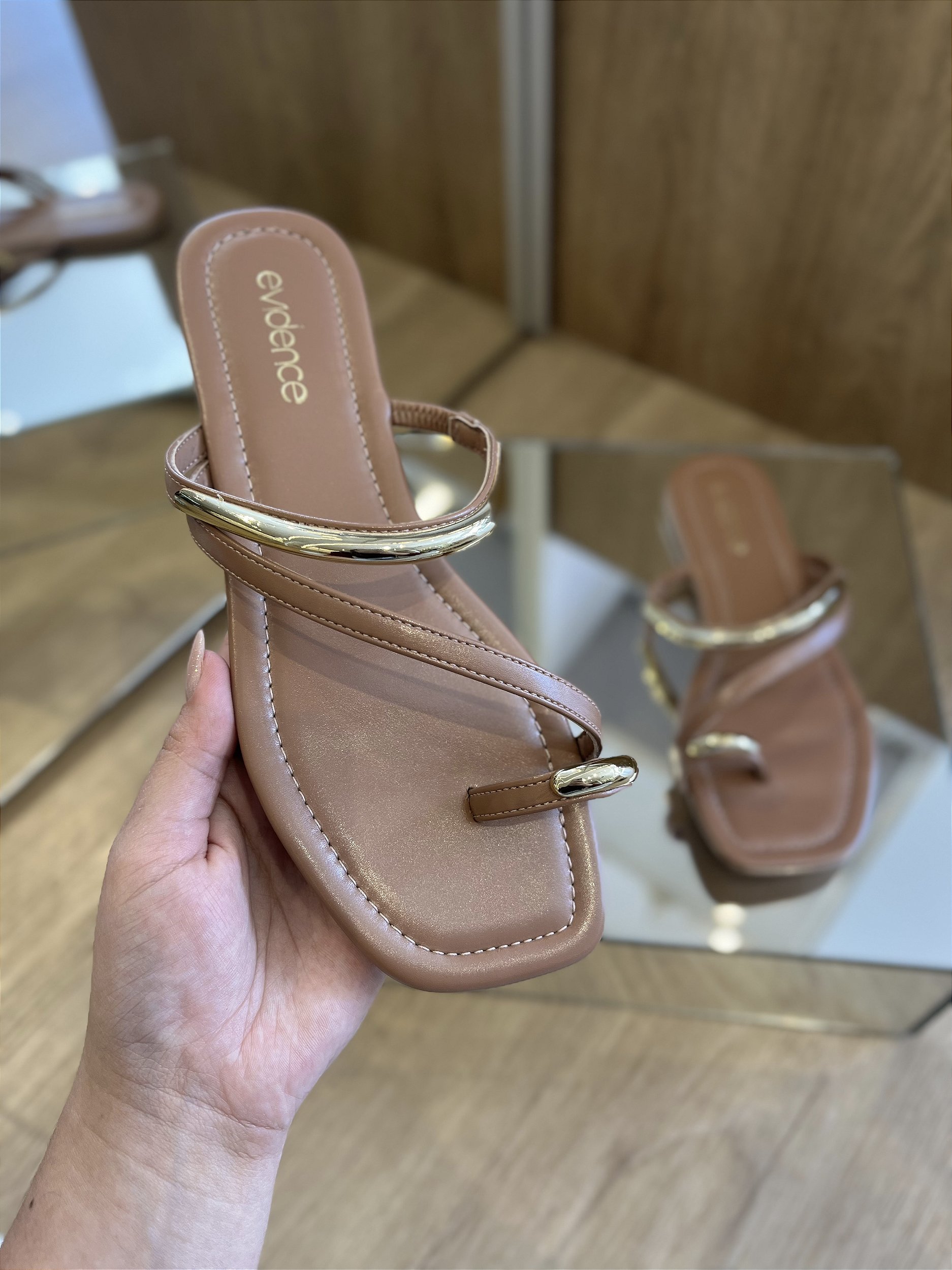 Rasteira Bege Tira Com Aplicação Dourada Karoline
