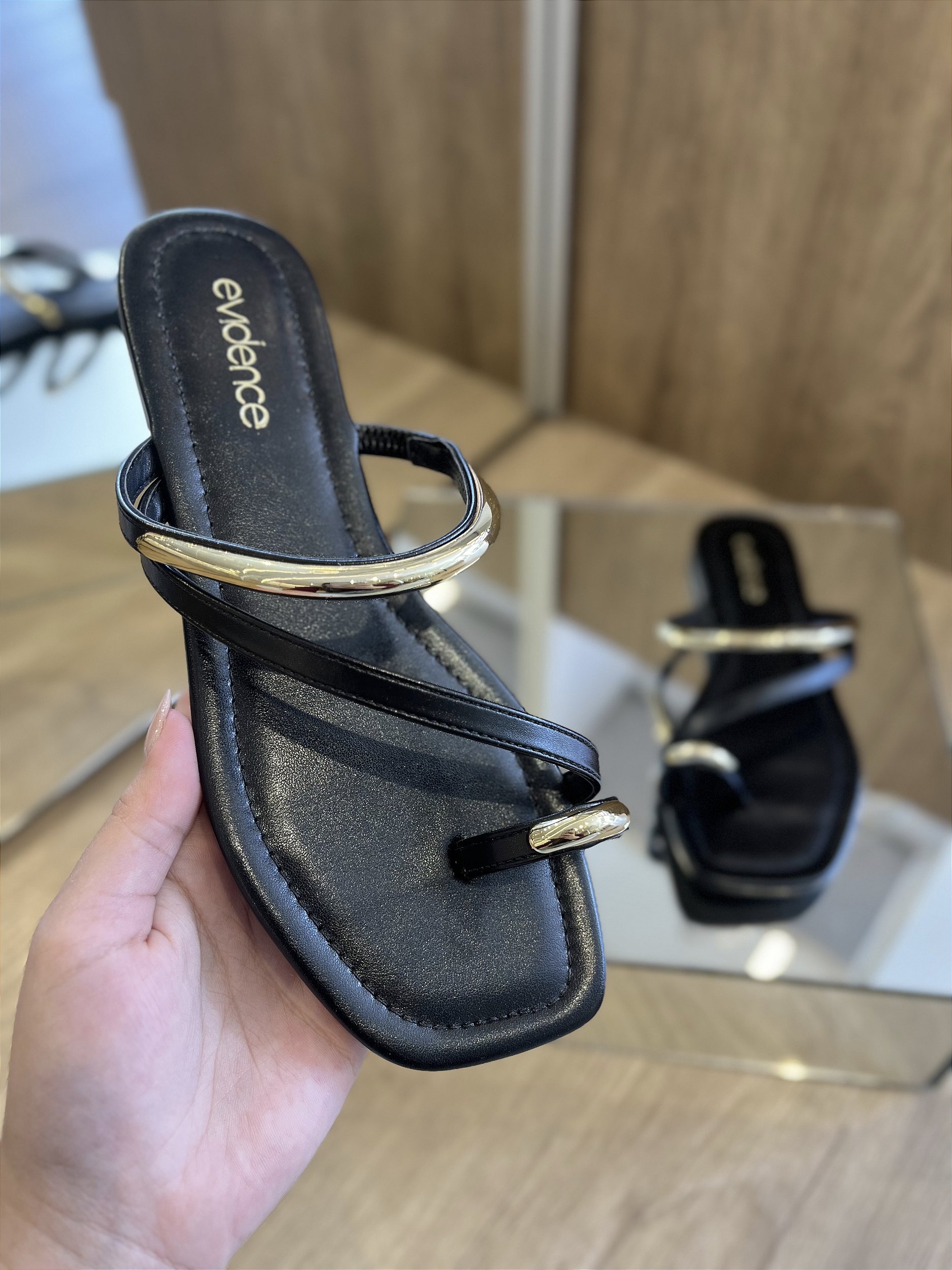 Rasteira Preta Tira Com Aplicação Dourada Karoline