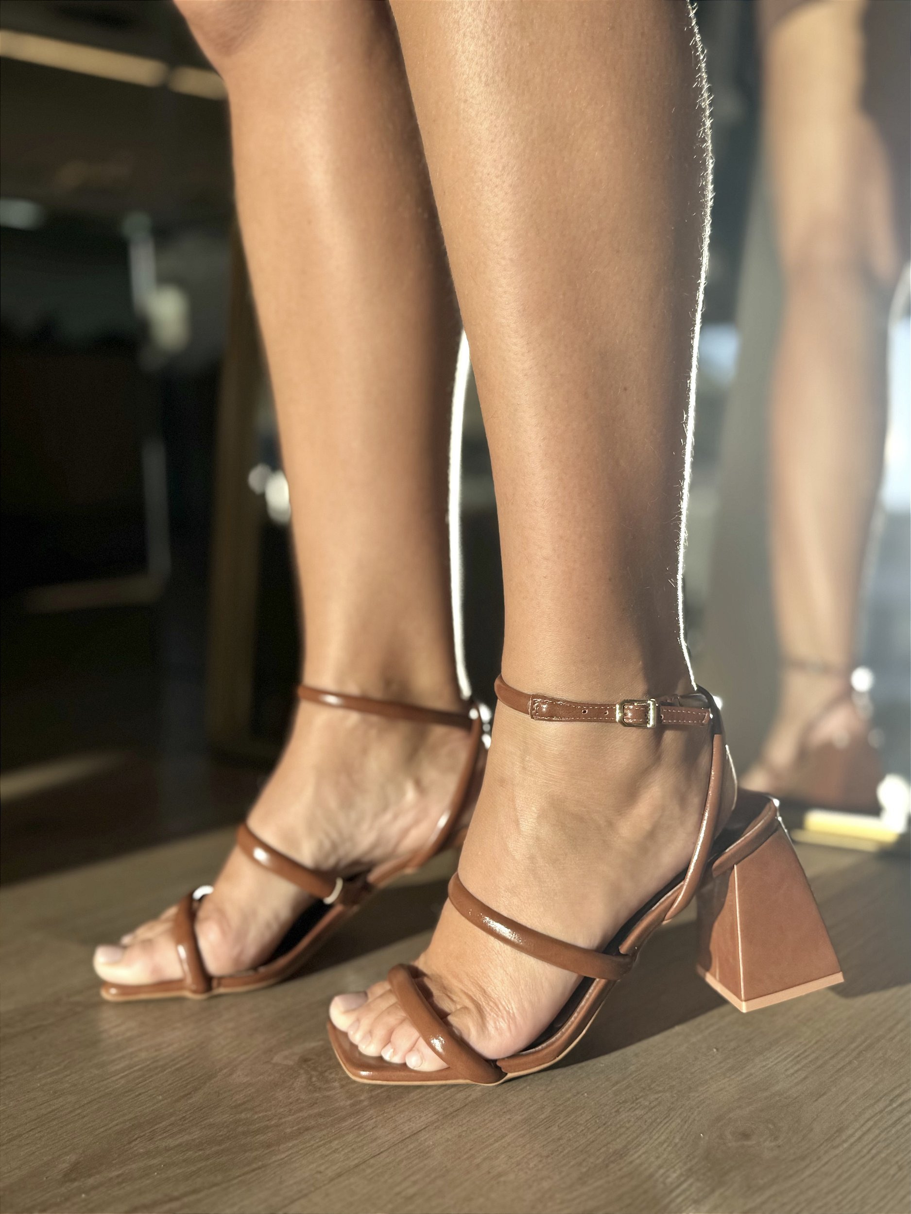 Sandália Marrom Duas Tiras Salto 8cm Aurora