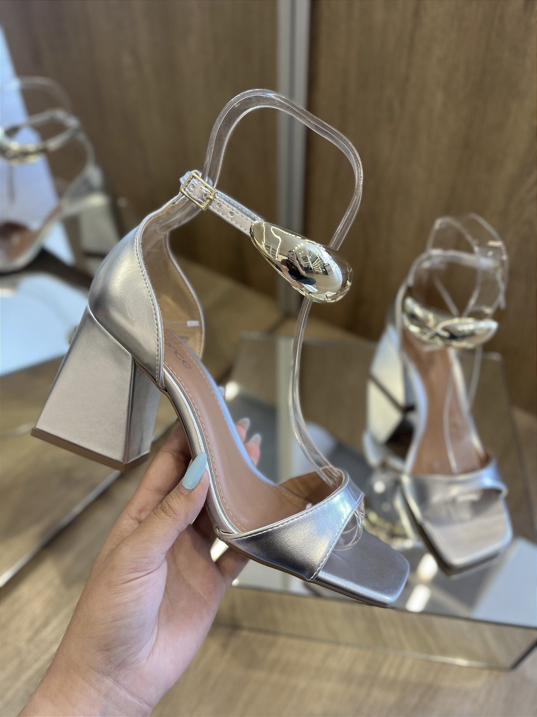 Sandália Prata Detalhe Tornozeleira Dourada Antonia