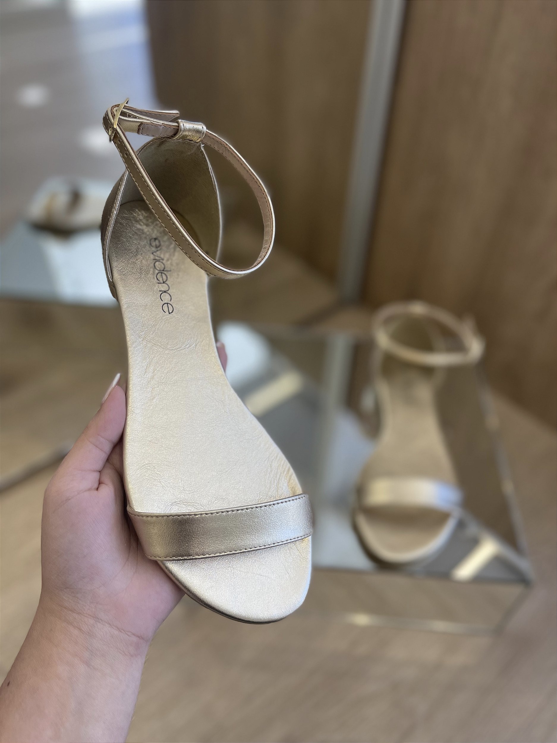 Sandália Rasteira Básica Em Couro Dourada Ramona