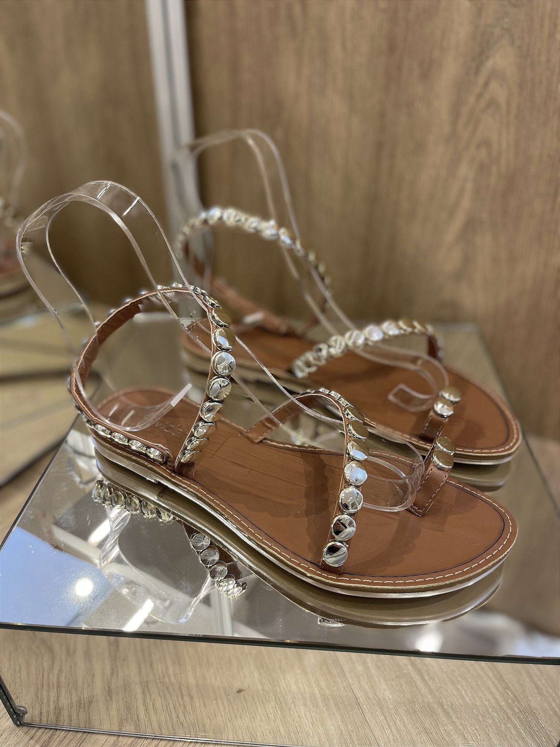 Sandália Rasteira Marrom Com Detalhes Dourados Elis