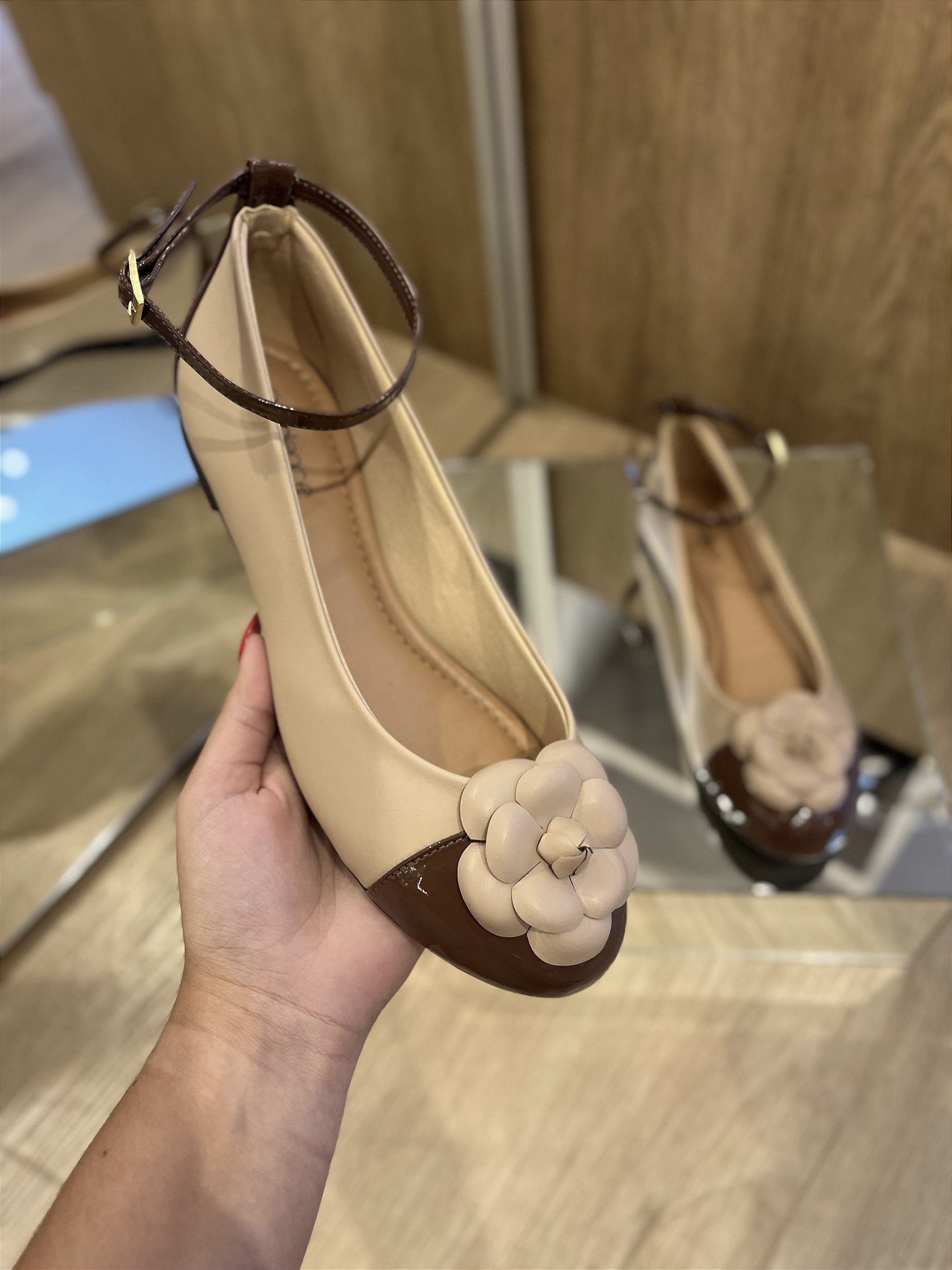 Sapatilha Bege/Marrom Detalhe de Flor Ayla