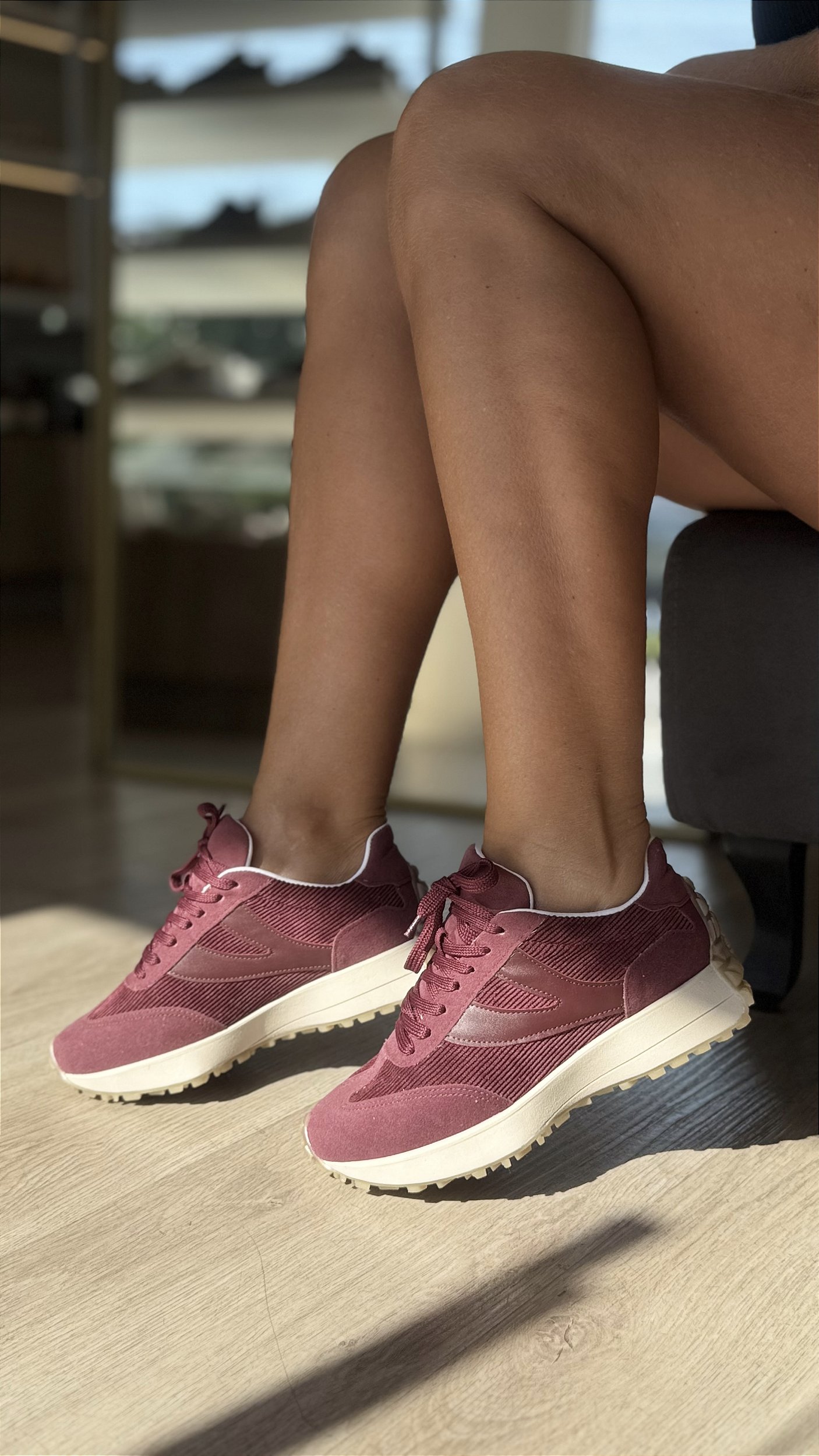 Tênis Camurça Cherry Com Detalhes Em Veludo Vitória